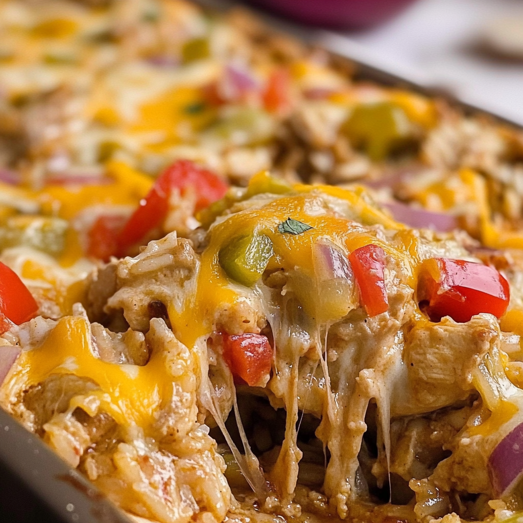 Chicken Fajita Casserole is a delicious layered dish combining cooked chicken, rice, vegetables, and cheese, flavored with fajita seasoning. It’s an easy way to enjoy fajitas in a comforting casserole format.