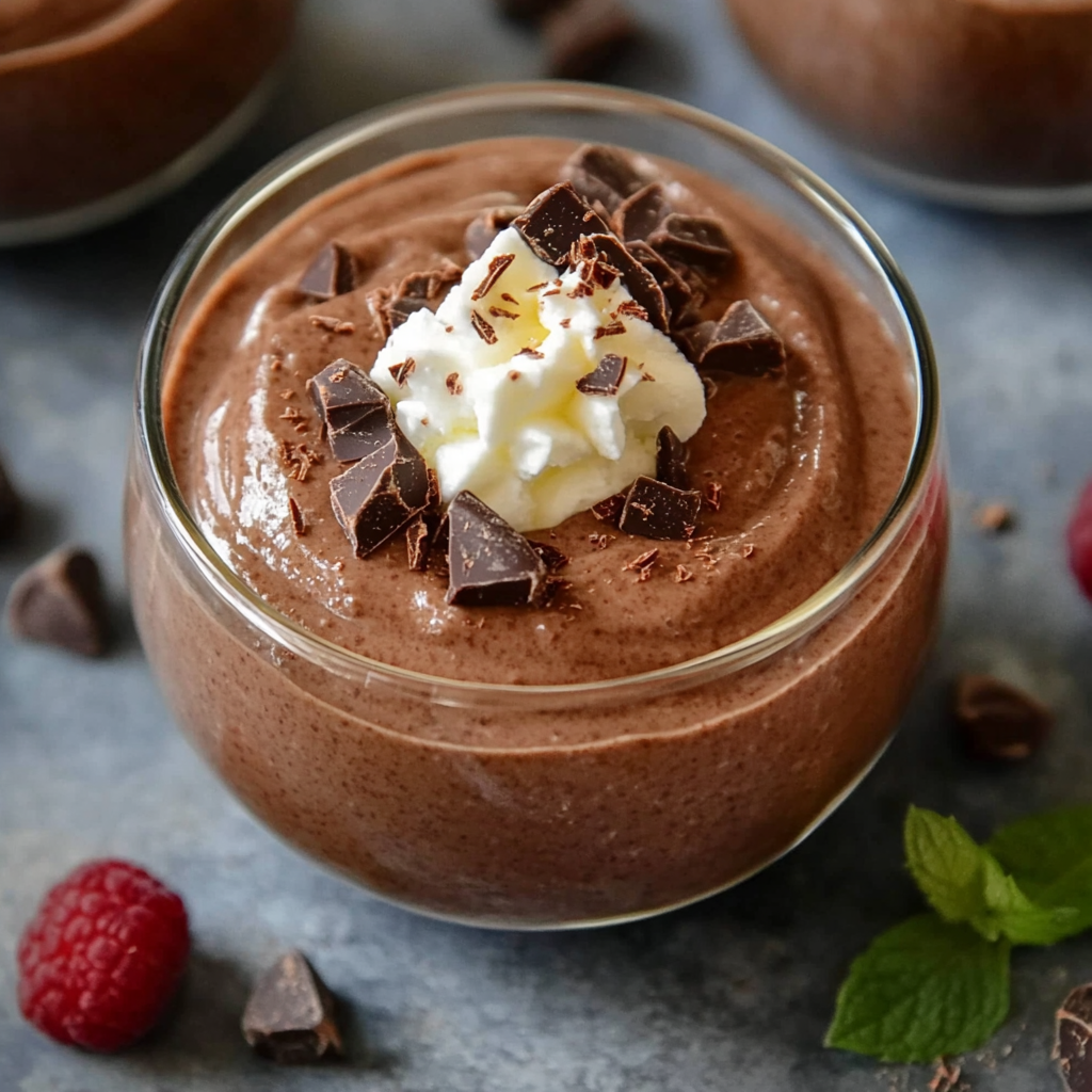 - Serve with optional toppings like whipped cream, shaved chocolate, or fresh berries if desired. Enjoy your delicious Chocolate Protein Pudding!