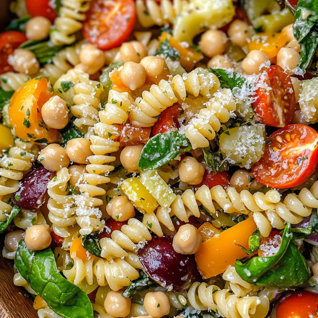 Italian Pasta Salad is a refreshing dish made with pasta, chickpeas, fresh vegetables, and a zesty dressing. It’s perfect for gatherings.
