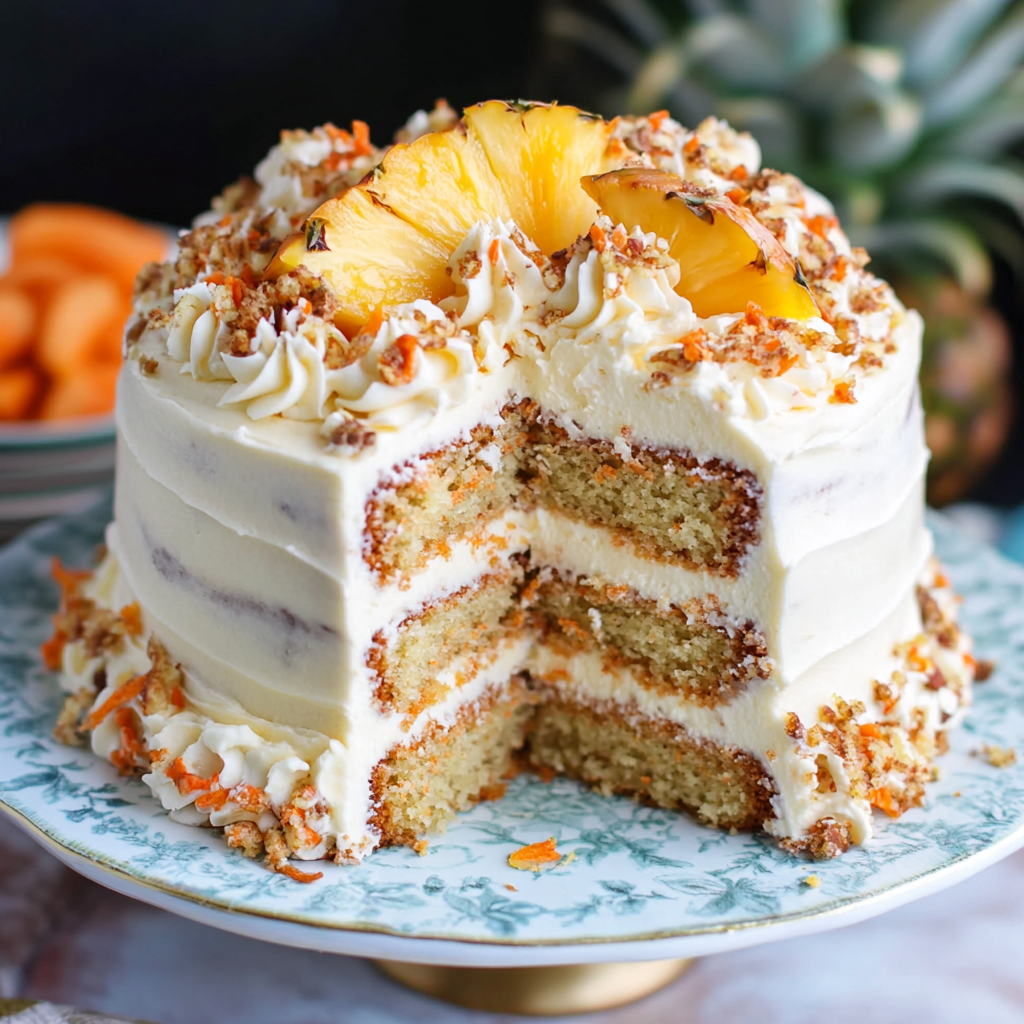 Pineapple Carrot Cake is a delightful dessert that combines the sweetness of pineapple with the earthy flavor of carrots. This cake is perfect for any occasion, from birthday parties to holiday gatherings. The moist texture and rich taste make it a favorite among carrot cake lovers. With its easy cream cheese frosting, this Pineapple Carrot Cake stands out as a delicious treat everyone will enjoy!