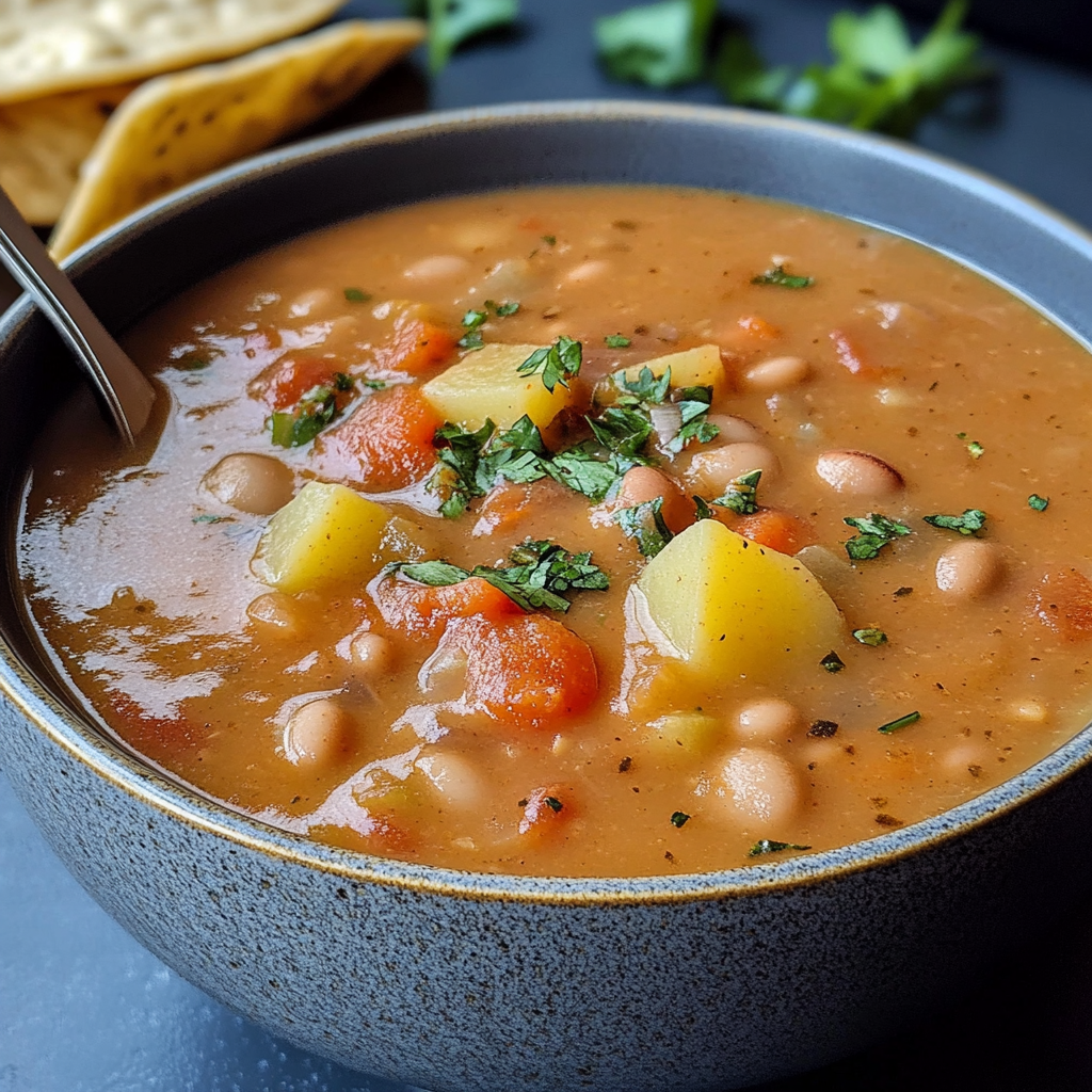 Pinto Bean Soup is a warm, comforting dish that combines the rich flavors of fire-roasted tomatoes, tender vegetables, and protein-packed pinto beans. This hearty soup is not only budget-friendly but also a nutritious option for any meal. Perfect for chilly days or quick weeknight dinners, it comes together in one pot, making cleanup a breeze. With its thick and creamy texture—achieved without any dairy—this vibrant soup is sure to satisfy your taste buds while keeping your health goals in check. Enjoy it on its own or pair it with crusty bread for a complete meal that everyone will love!