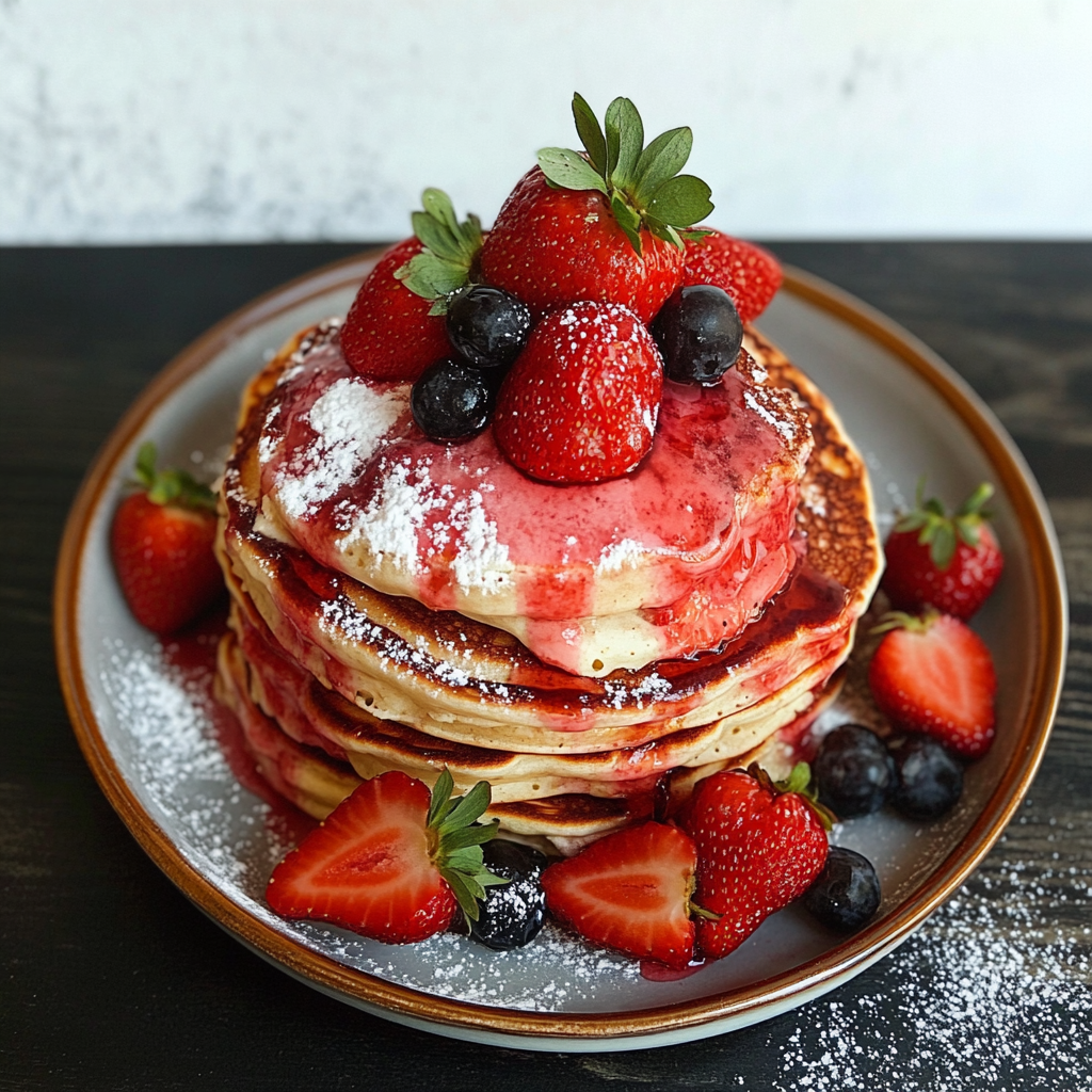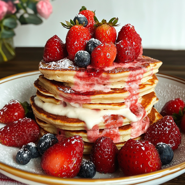 Indulge in the delightful taste of Strawberry Pancakes, featuring a soft, fluffy texture complemented by fresh strawberries and a homemade strawberry sauce. Perfect for breakfast or brunch, these pancakes are easy to whip up and sure to impress your family and friends. The combination of sweet syrup and juicy berries makes every bite a burst of flavor, making it an ideal treat for any occasion. Elevate your morning routine with this delicious recipe that’s both wholesome and satisfying!